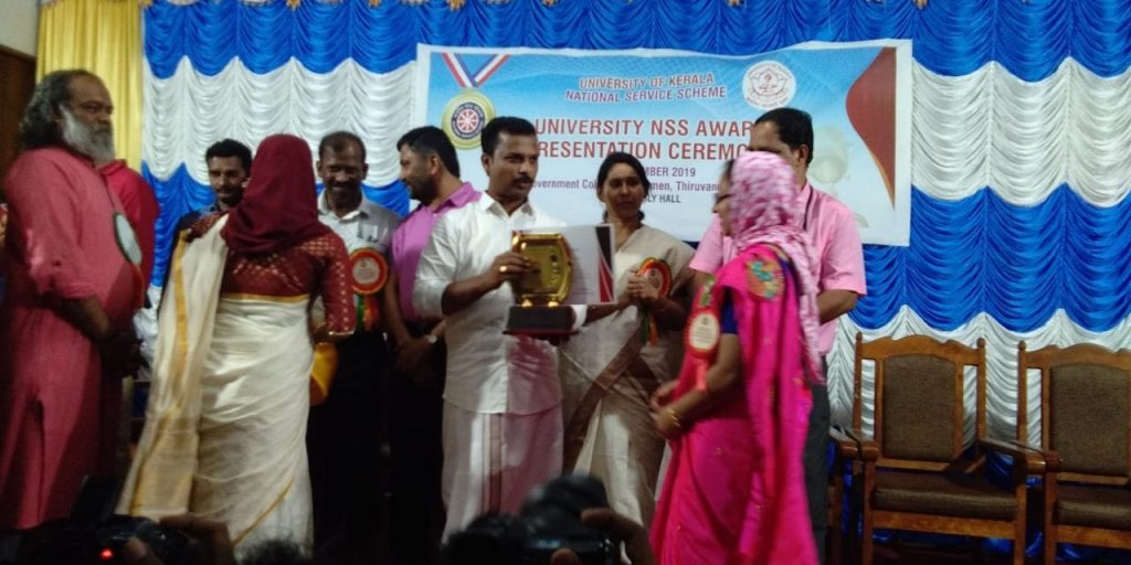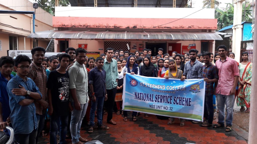 The National Service Scheme is an all India scheme initiated by the Union Ministry of Youth Affairs. It is established to create strong social awareness among students. It helps to develop the personality of its members through study and work camps, social service activities and other useful and productive programmes. Active members who participate in the ten day special camping programmes are awarded grace mark for admission to higher courses. The scheme is voluntary and selective. The scheme is expected to inculcate among the students an urge to participate in Nation building activities. It also provides a creative outlet for their energy. At present there are two units of N.S.S. in our college, each unit consisting of 100 volunteers.